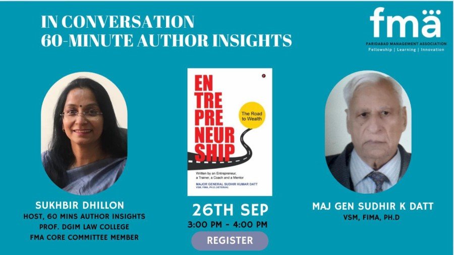 Faridabad Management Association is pleased to invite you to an exclusive Monthly Series – In Conversation 60-Minute Author Insights, a talk show featuring renowned authors, inviting them to share insights, life experiences, and expertise in leadership & management practices.