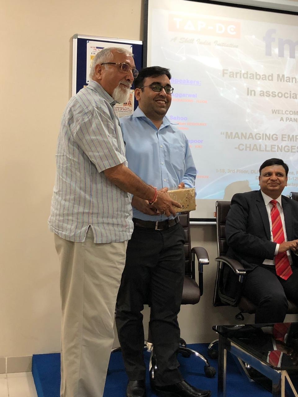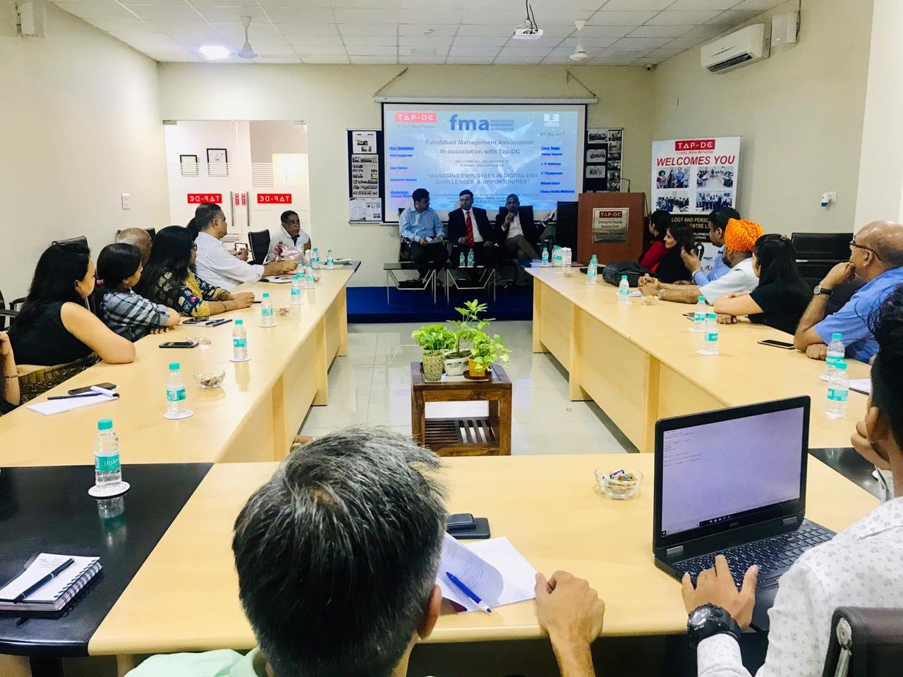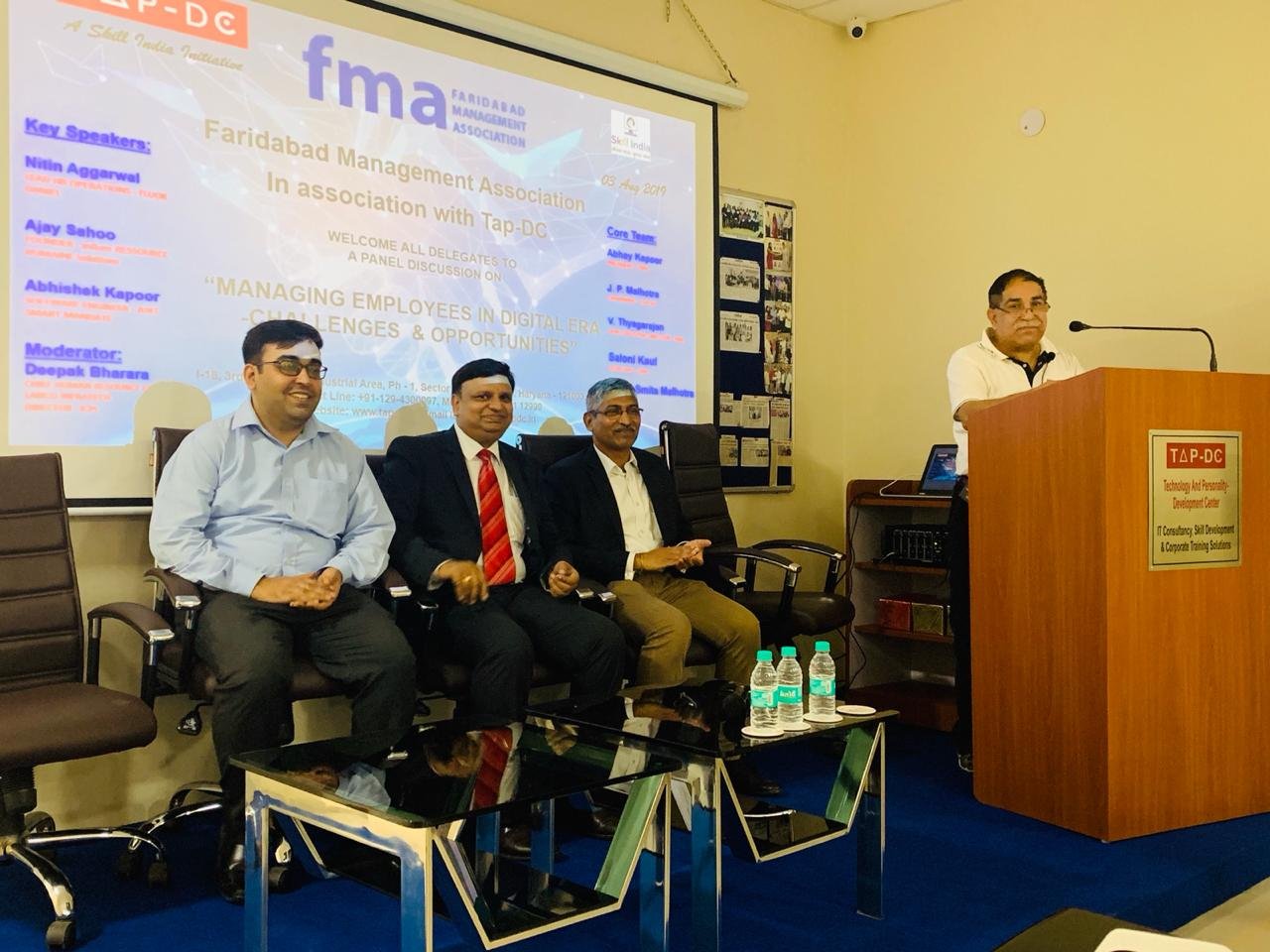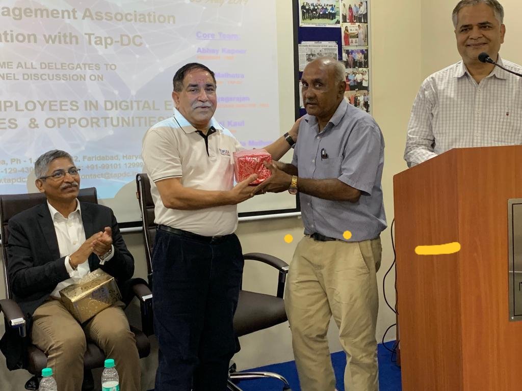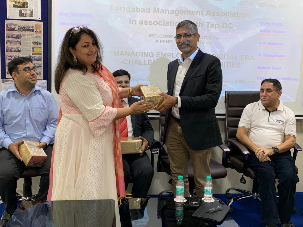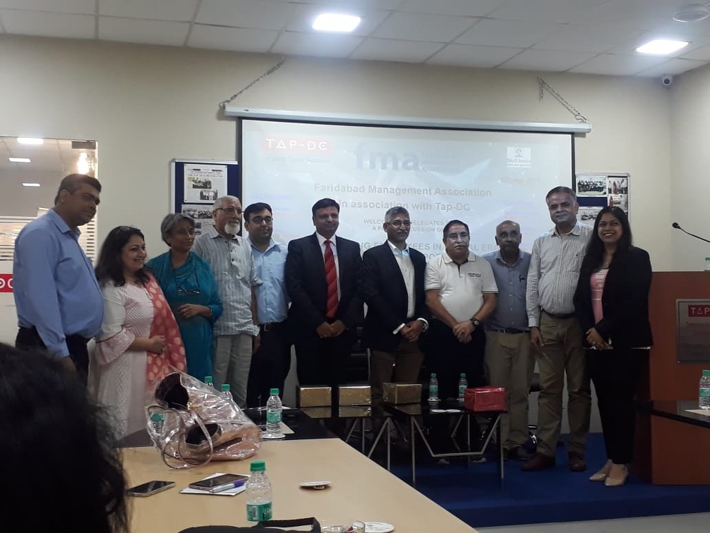 Faridabad Management Association in collaboration with TAP-DC Faridabad organized a Seminar on “MANAGING EMPLOYEES IN DIGITAL ERA – Challenges & Opportunities on 3rd August 2019 (Saturday) from 2.30 to 5.00 Pm. The Program Started with an Inaugural Address by Mr. Abhay Kapoor, President, Faridabad Management Association. The Speakers were Mr. Deepak Bharara – CHRO, Lanco also a Moderator, Mr. Nitin Agarwal, Lead HR Operations – Fluor Daniel, Mr. Ajay Sahoo – Influer Resource, Humane Solutions LLP, Mr. Abhishek Kapoor – Software Engineer – Juxt Smart Mandate (JSM). It was attended by about 40 participants from various industries from Faridabad.