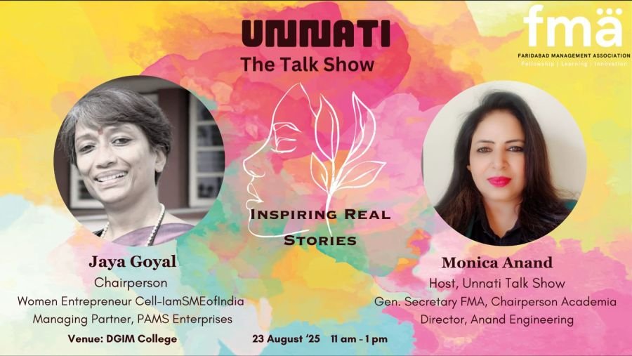 Faridabad Management Association is pleased to invite you all to another episode of “UNNATI THE TALK SHOW” on Women Empowerment by trailblazing women entrepreneurs to be held on: